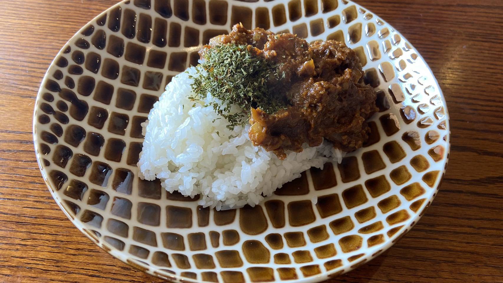 大葉の栽培もしていただいている"大森農園"のトマトを贅沢に使用し、トマトの水分だけで作った無水ドライカレーです。